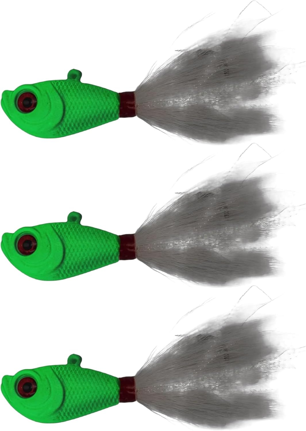 This bucktail jig is equipped with reflective and lifelike materials that mimic the natural movement of baitfish, making it irresistible to predatory species. Hand-tied deer hair adds natural movement, and the lure's hydrodynamic design allows for a lifelike, enticing glide through the water, increasing your chances of attracting and catching a variety of saltwater species.